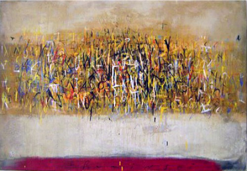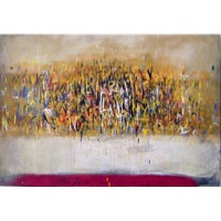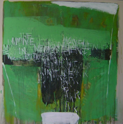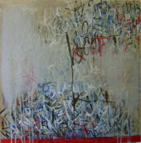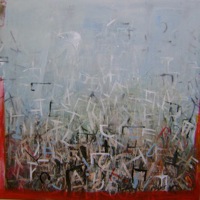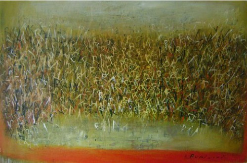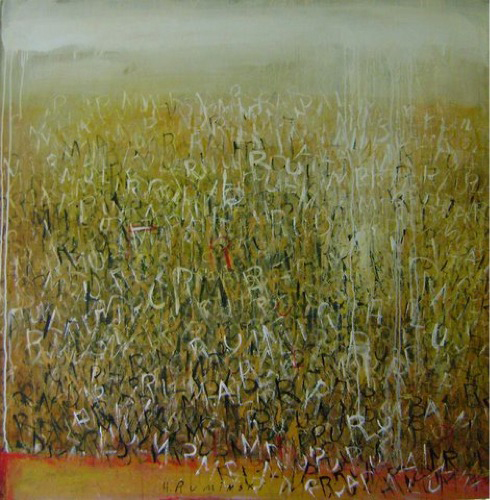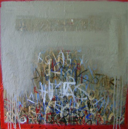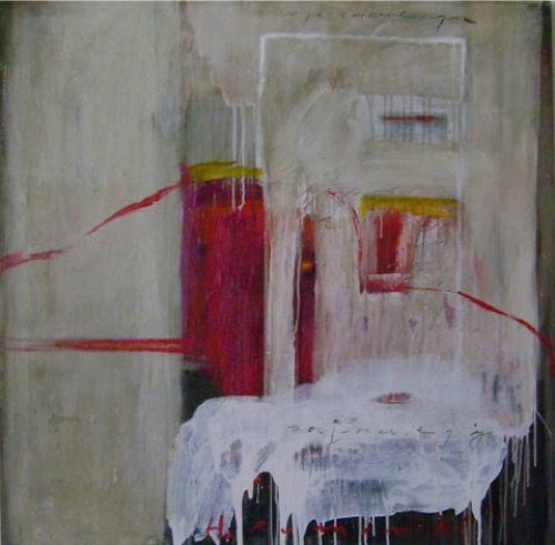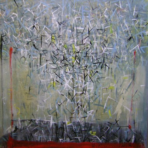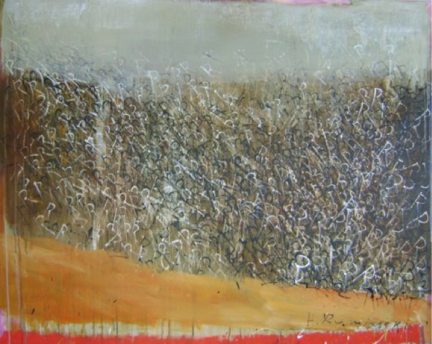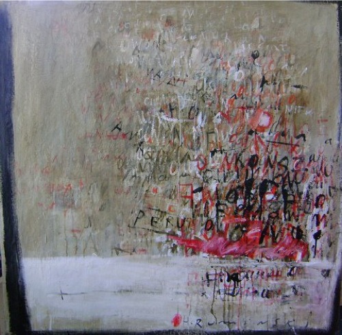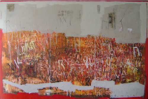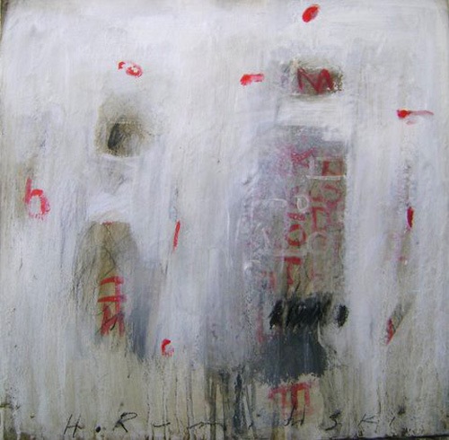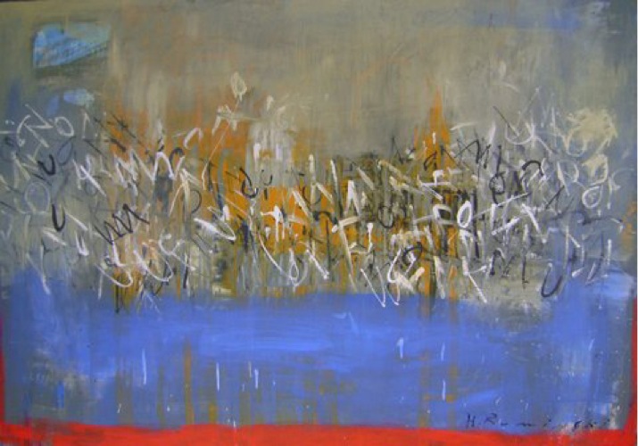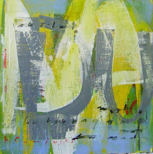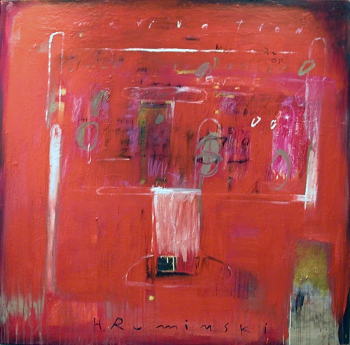 Ruminski expresses herself through layers of images, textures, colours, scribbles and letters on canvas. As an Abstract painter, Ruminski works in mixed media on canvas.