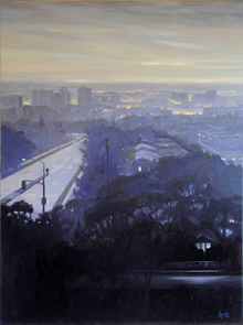 Amos' paintings begin with a familiar scene that develops into a metaphor for change and transition. Born in Kapuskasing in 1953, Amos has seen most of Canada, lived many years in Toronto and currently has her studio in the Crowsnest Pass, Alberta. Amos graduated from the University of Waterloo and has taught at the Alberta College of Art. Amos has won two public art competitions and her work is in the US Library of Congress. The Alberta Foundation for the Arts, RBC Dominion Securities and Esso Resources are a few of the organizations that have added her work to their collections. Barbara Amos’ paintings are in private collections in North America and Europe. Image: