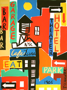 Slaughter is a painter and printmaker from New York City. He creates work that is colourful, almost minimalist, with subject matter ranging from evocations of urban life to critiques on the popularity of earlier twentieth century art. Image: |